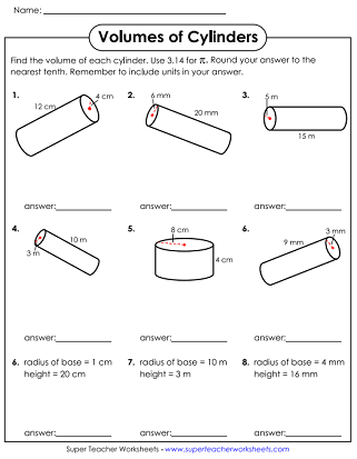 Surface area & volume of solids. Award winning educational materials like worksheets, games, lesson plans and activities designed to help kids succeed. The following printable math worksheets for 6th, 7th, 8th, and 9th grade include a complete answer key. Printable surface area and volume worksheets. In this geometry worksheet for eighth graders, students review an example problem and then practice finding the volume of a variety of cylinders.